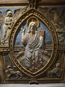 Bild: Christus-Medaillon mit den vier Evangelisten-Symbolen, Basilica di Santa Cecilia, Rom (Foto: privat)